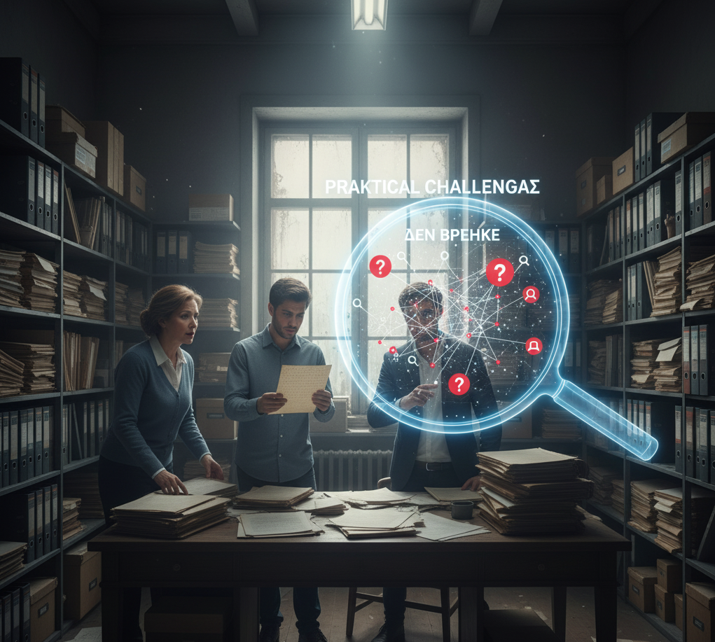Heirs must search through notaries and courts across Greece — a slow and often ineffective process.